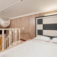 Просторные и вместительные двухэтажные номера с собственной ванной комнатой и большой двуспальной кроватью отличаются увеличенной площадью и удобным расположением. Именно поэтому номера данной категории пользуются высоким спросом у гостей, которые ценят свободное пространство. Окно номера выходит на спортивный зал фитнес центра.