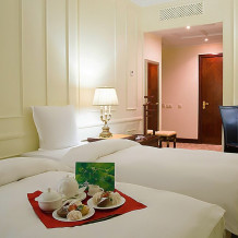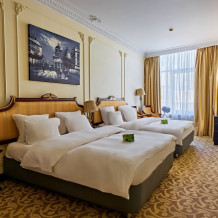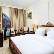 Уважаемые гости, детали интерьера и планировки в номерах одной категории могут отличаться. Номер самой востребованной категории с размещением twin. Высокие потолки, классический интерьер, итальянская мебель и премиальный текстиль, вся положенная пятизвездочному номеру техника. Здесь вы найдете комфорт, полноценный отдых и вдохновение для плодотворной работы.