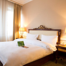 Уважаемые гости, детали интерьера и планировки в номерах одной категории могут отличаться. Номер самой востребованной категории с размещением single или double (двуспальная кровать) . Высокие потолки, классический стильный интерьер, итальянская мебель и премиальный текстиль. Здесь вы найдете комфорт, полноценный отдых и вдохновение для плодотворной работы.