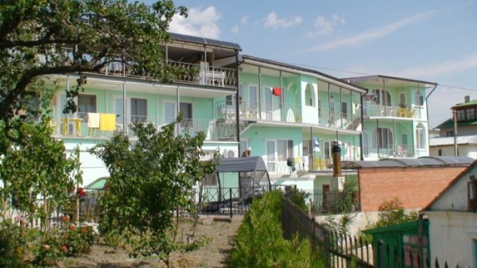 Гостиница «Лагуна» в центре Коктебеля, 3 этажа, номера со всеми удобствами, балкон общий. Кухня общая с видом на море. Есть также мангал и беседка, качели, Wi-Fi.
