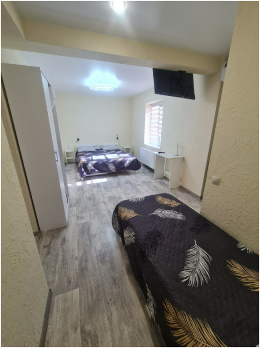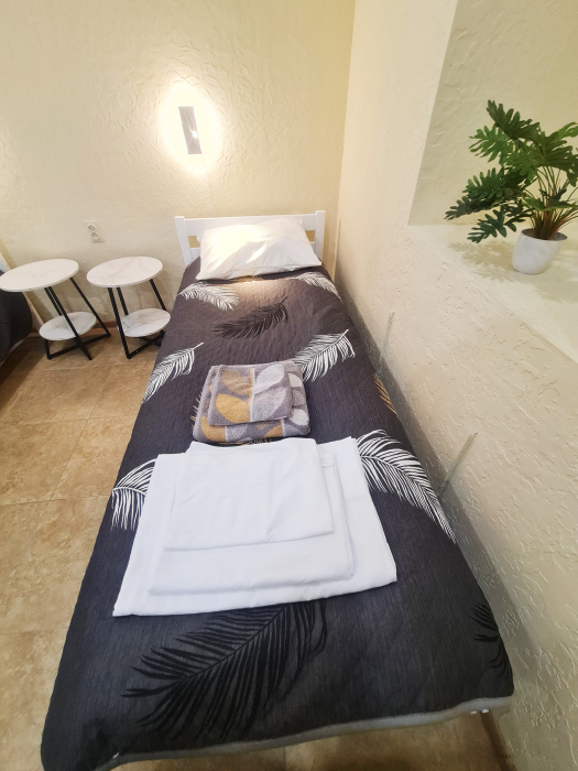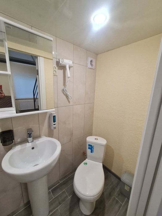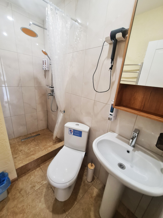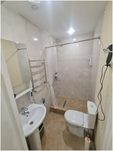 В каждом номере: санузел с душем, фен, свежий ремонт, новая техника и мебель. Набор из шампуня, мыла. Шкаф для одежды, полотенца двух видов на человека, постельное белье.