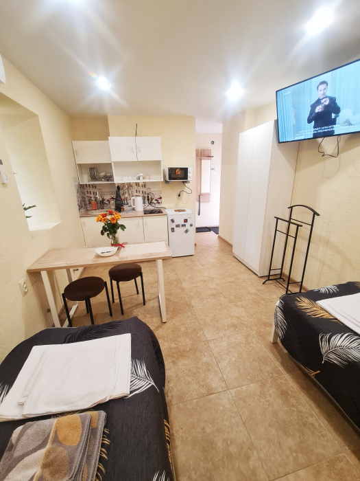 Номер в центре старого Кисловодска. Рядом с Свято-Никольским собором. Студия 22 м² -индивидуальное отопление -свежий ремонт Пешком до парка 5 минут В квартире: -удобные кровать с анатомическим матрасом - хорошие кресло кровати -телевизор с IPтелевидением-кондиционер -утюг -гладильная доска -Кухня полностью укомплектована: -холодильник -микроволновая печь-посуда и столовые приборы сан узел -душевая -фен -гигиенические принадлежности Включено в стоимость: -высокоскоростной Wi-Fi -постельное бельё, полотенца.