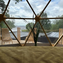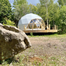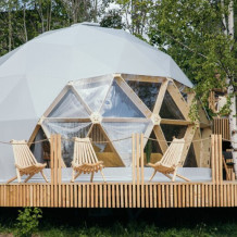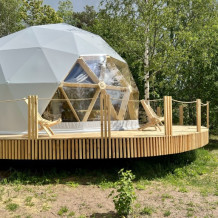 Глэмп: Уютный и современный купольный дом с панорамным остеклением и собственной террасой. Внутри Вы найдете комфортную двуспальную кровать, кухонную и обеденную зоны и современный санузел с необходимыми туалетными принадлежностями и полотенцами, а на террасе шезлонги и зона для барбекю. Если Вы планируете путешествие с ребёнком до 3-х лет, предупредите нас заранее и мы предоставим ему отдельную кроватку.