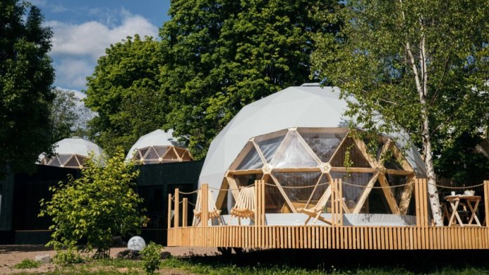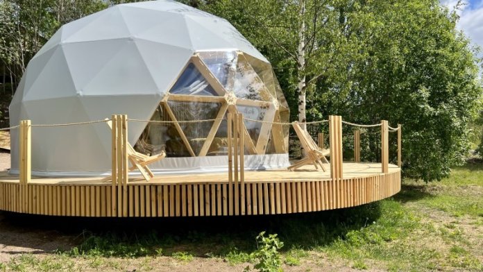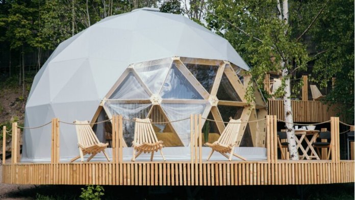 Купольный глэмп повышенной комфортности: площадь 30 кв.м., панорама на залив с высоты 3,5 метра.
