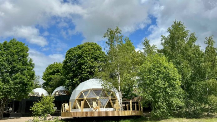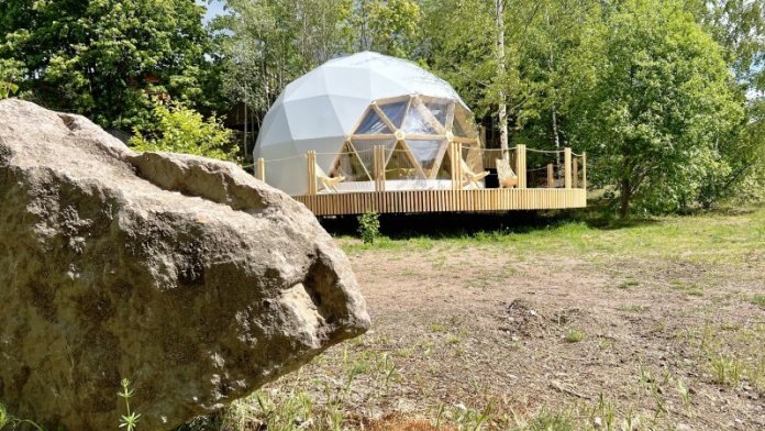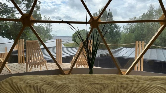 Купольный глэмп повышенной комфортности: панорама на залив с высоты 3,5 метра.