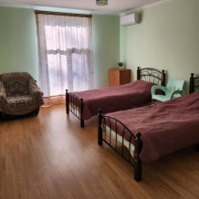 Сдаётся часть дома под ключ. По сути - это две двухкомнатные квартиры на 2 этаже дома с отдельными входами, санузлами и кухнями. На территории есть парковка на 5 автомобилей. Рядом с домом, в 5 минутах находится здравница «Жемчужина Абхазии» с 2 бассейнами (посещение платно, 150 рублей) и столовой.