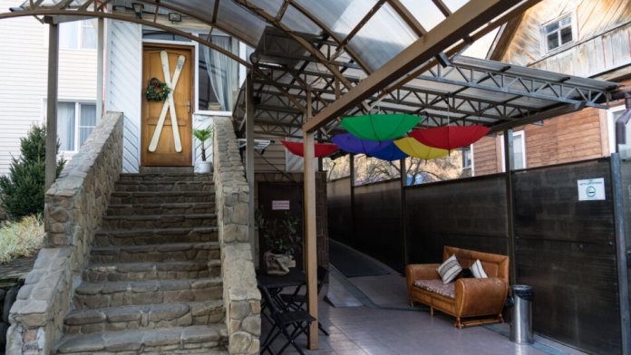 Отель «Афина» расположен в центре поселке Красная Поляна, в 33 км от крепости Хоста. Вблизи расположены три курорта, 15 минут до последнего - Роза Хутор.