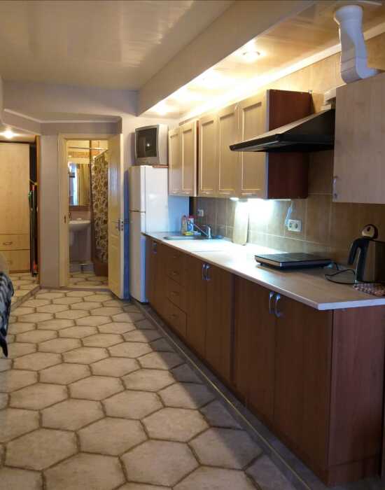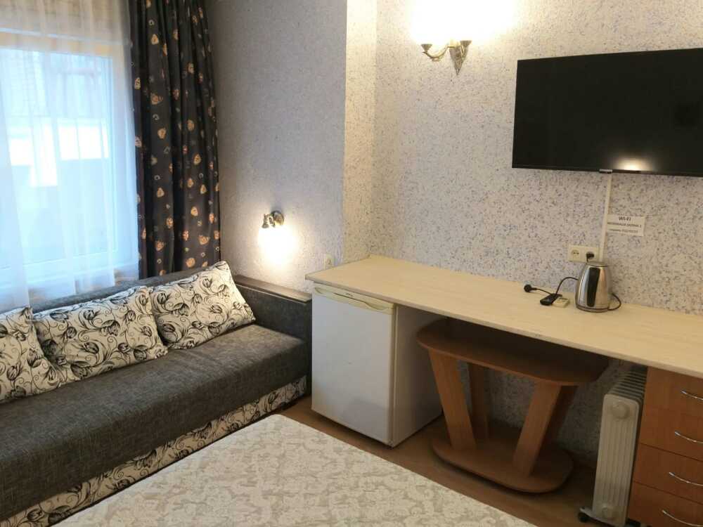 Небольшой номер на 2-3 человека. Особенно удобен для отдыха пожилым людям и гостям с маленькими детьми. В номере своя кухня, большой холодильник с морозильной камерой.