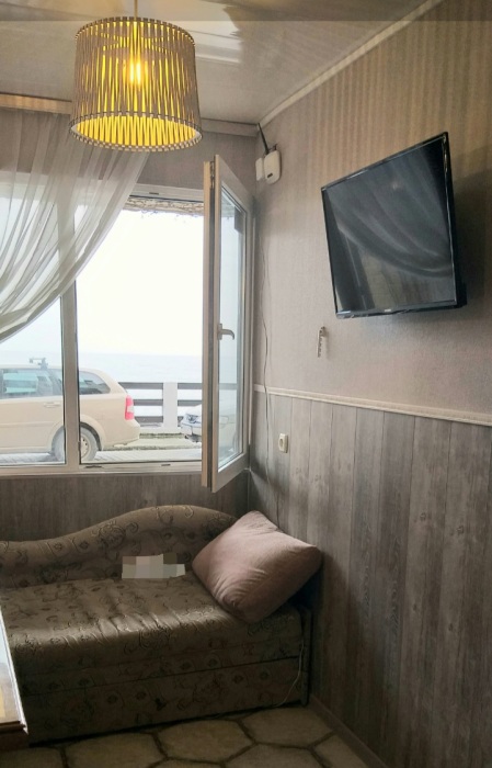 Уютный двухкомнатный номер с прекрасным панорамным видом на море. Комнаты раздельные. Современная мебель: в гостинной - мягкий уголок и кресло, комоды, на балконе - легкая, летняя мебель, 2 телевизора, камин. Санузел в номере (вода постоянно).