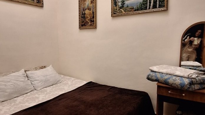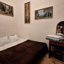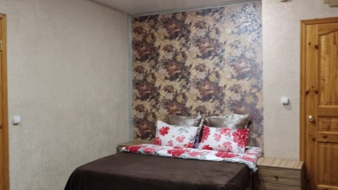 Номера имеют стандартный декор, стены оформлены панелями из натурального дерева. Из удобств: холодильник, телевизор и электрочайник.