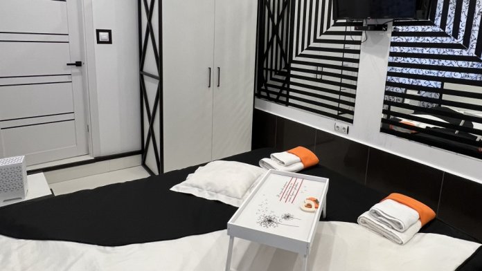 Новая мебель и бытовая техника, пластиковые панорамные окна, железная дверь, вай-фай, телевизор, стиральная машина, холодильник, микроволновая печь, автономное отопление, утюг, постельные белье, полотенца, туалетные принадлежности.