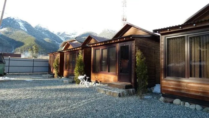 Трёхместные домики в посёлке Архыз, имеется всё необходимое для проживания, парковка во дворе, wi-fi, мангальная зона.