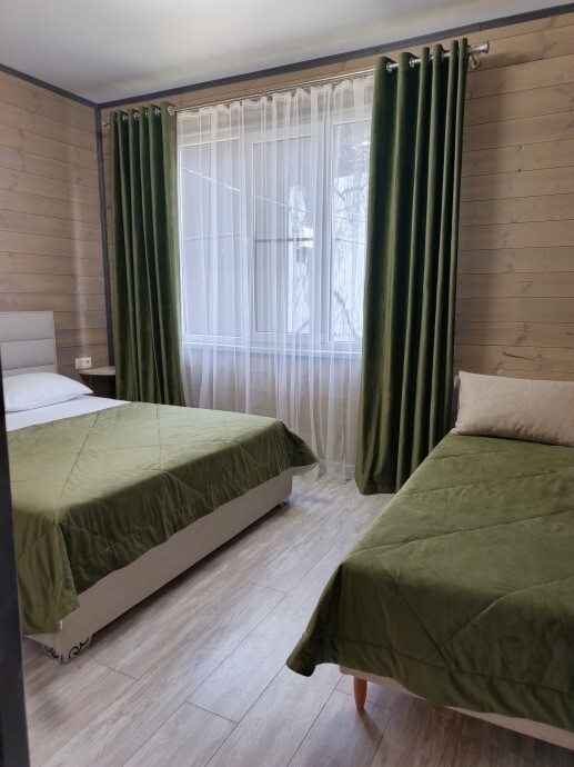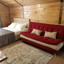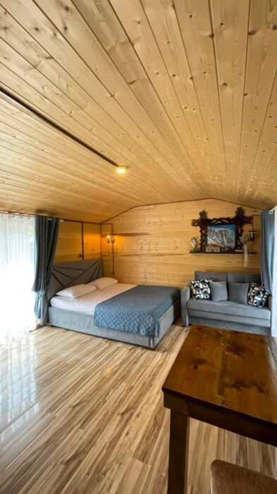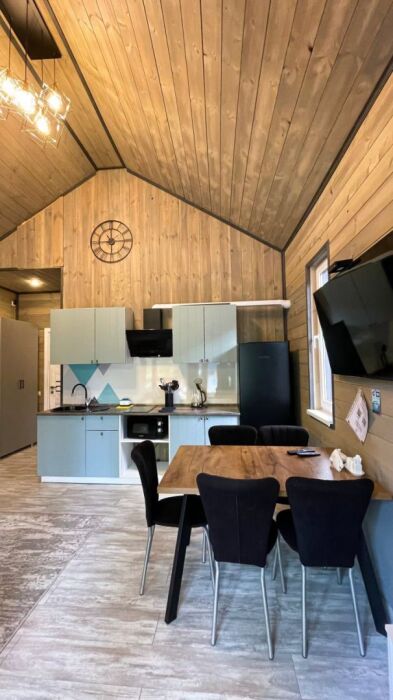 В домах имеется все необходимое для комфортного отдыха: интернет Wi-fi, телевидение, кухонная зона со всей необходимой техникой и посудой, полностью оборудованная ванная комната, уютная веранда с мебелью. У каждого домика мангальная зона и парковочное место.
