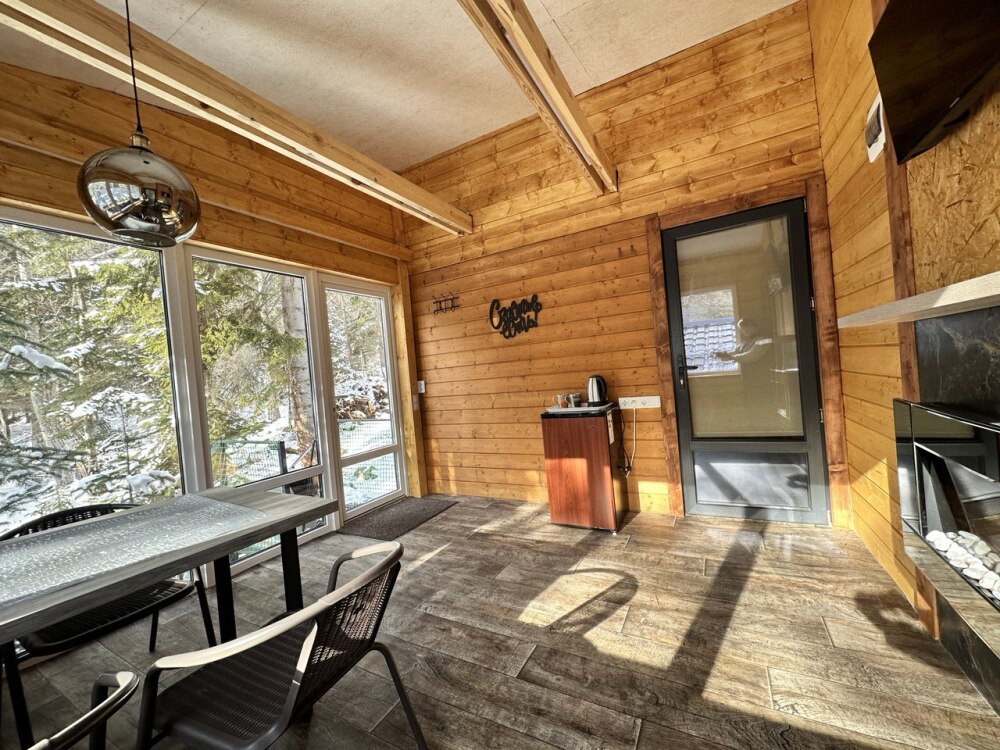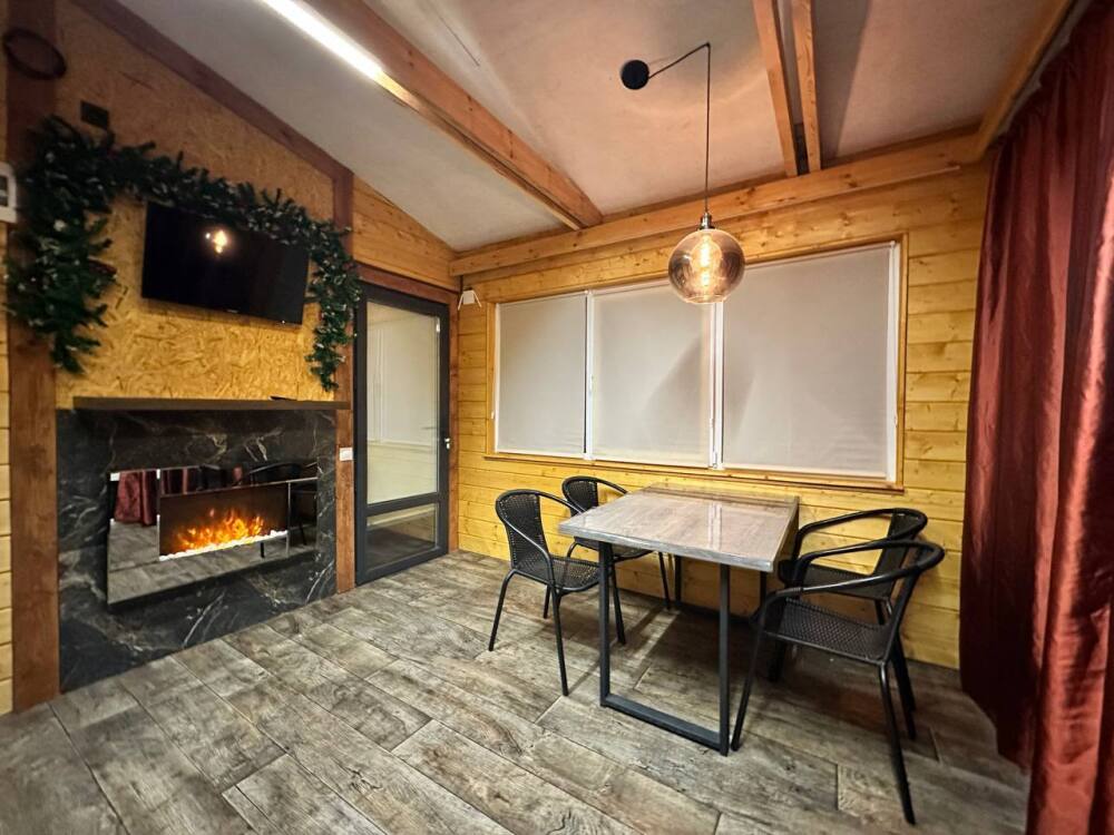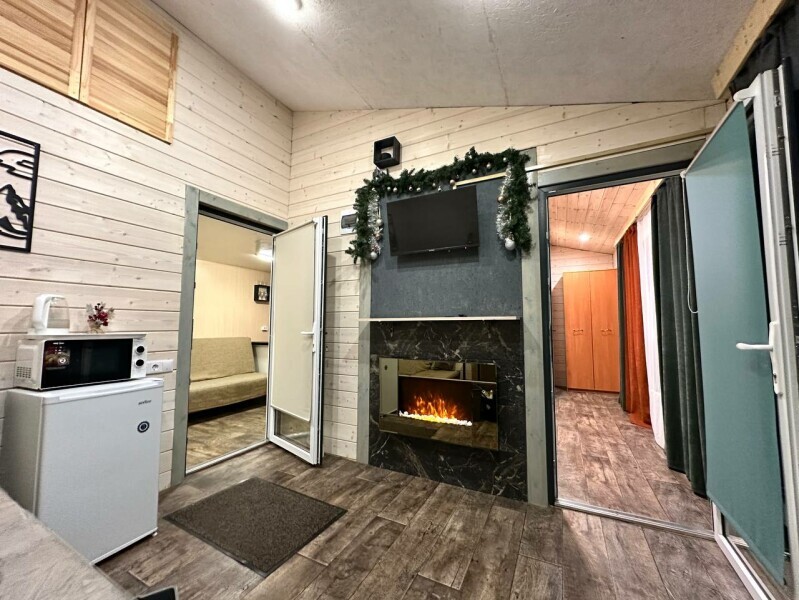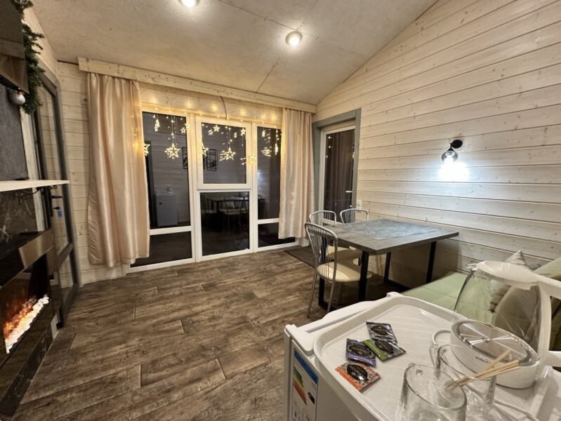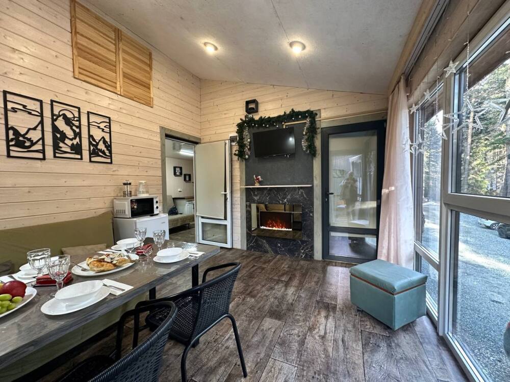 Во всем доме: Wi-Fi, индивидуальное отопление, гости сами могут регулировать температуру. В гостиной находится: обеденный стол, электрокамин, онлайн-телевизор, управление «умный дом».