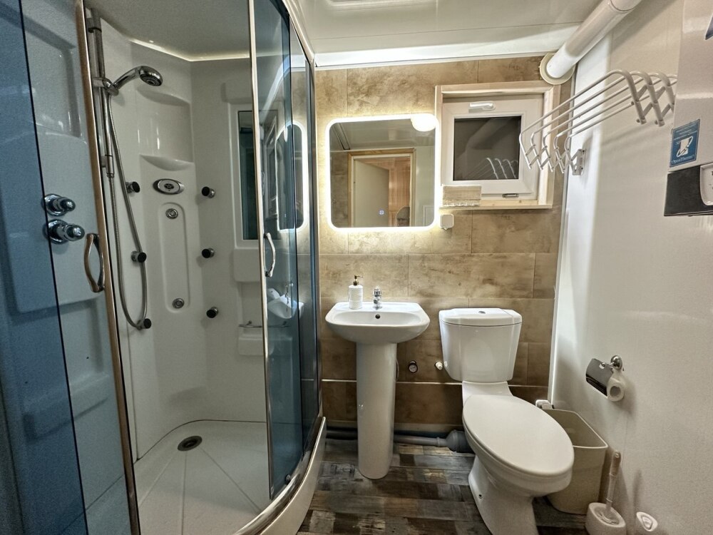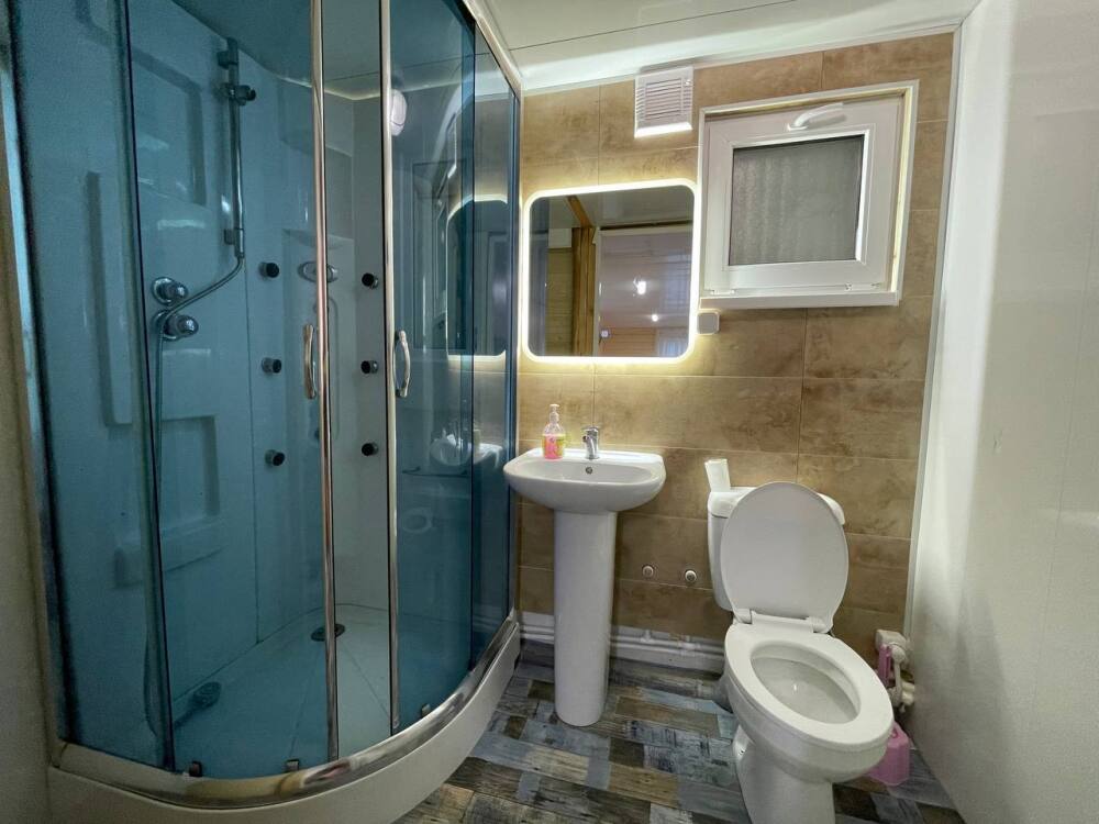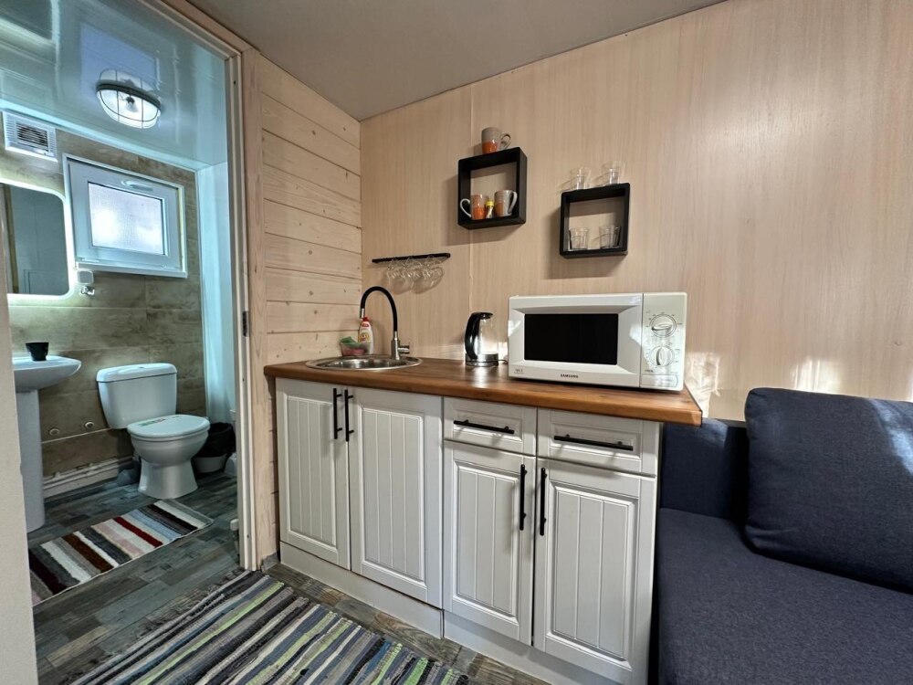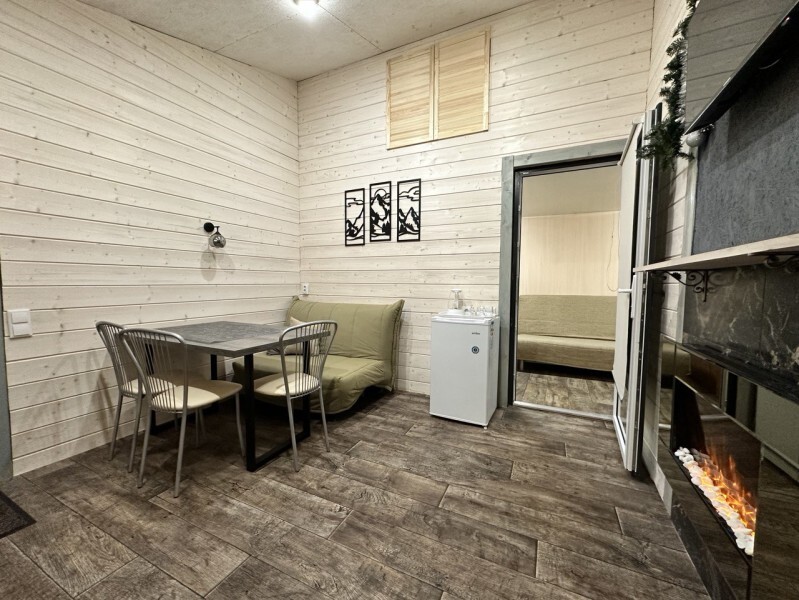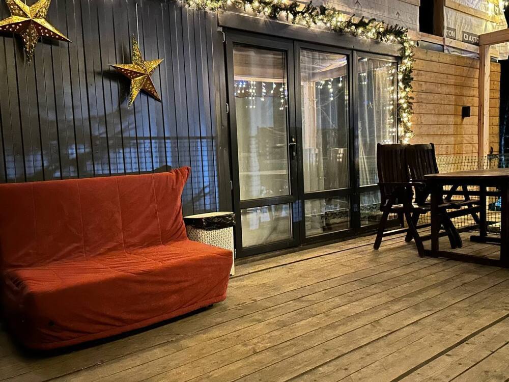Во всем доме: Wi-Fi, индивидуальное отопление, гости сами могут регулировать температуру. В гостиной находится: обеденный стол, электрокамин, онлайн-телевизор, управление «умный дом».