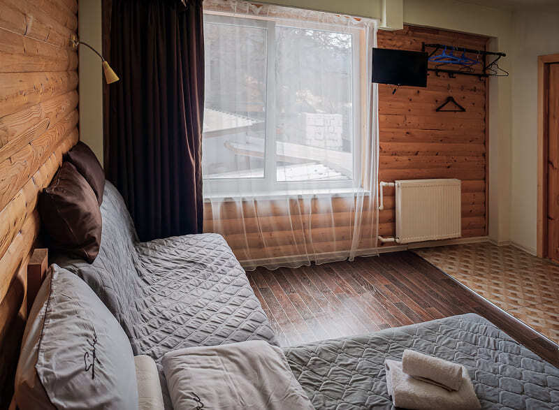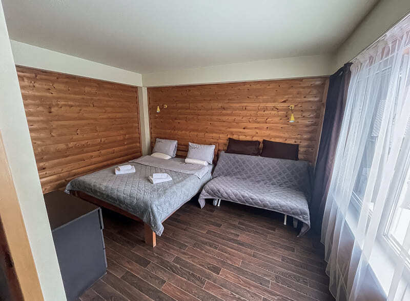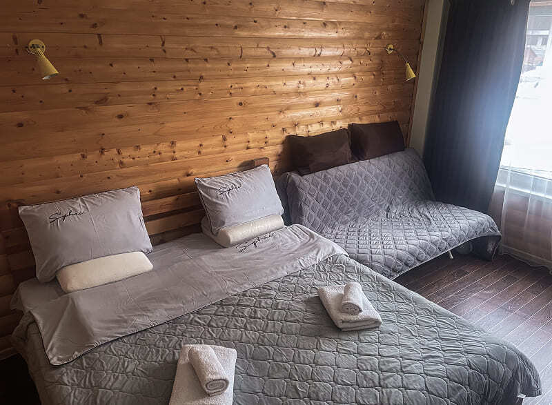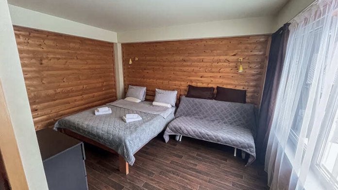 В номере: 1 двуспальная и диван-кровать или 4 односпальных кровати.