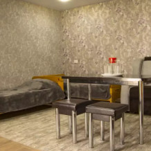 Комплектация мебели в номерах разная: двуспальные и односпальные кровати, диван, кресло.