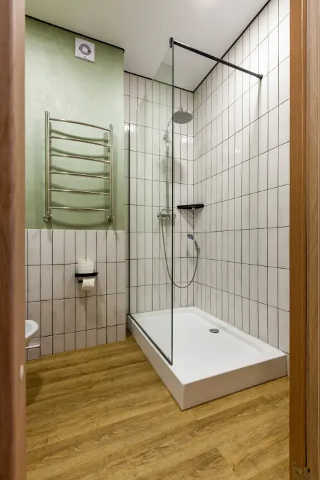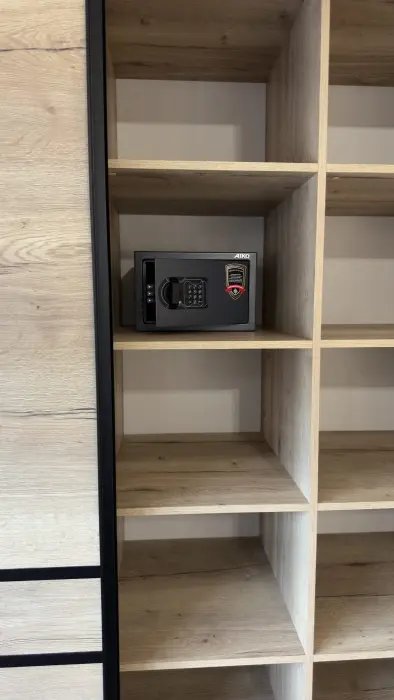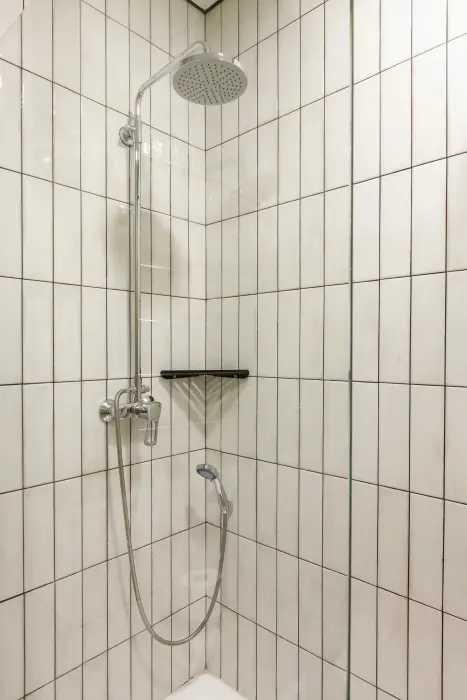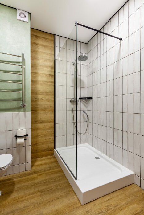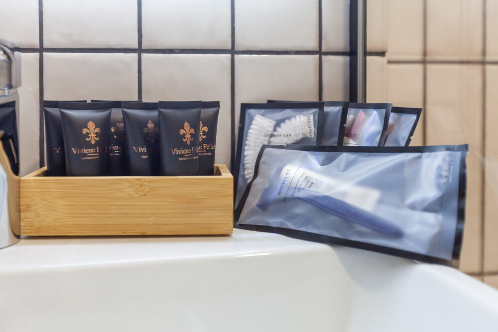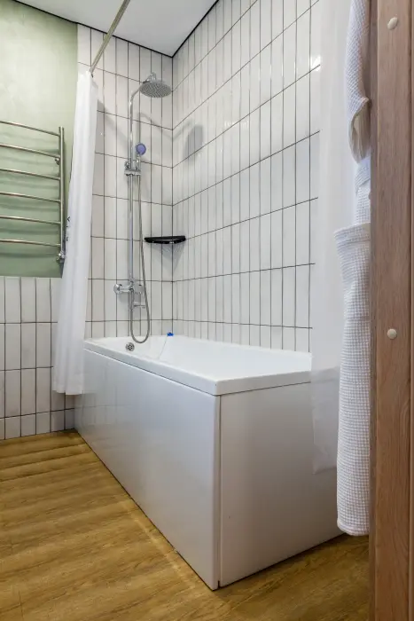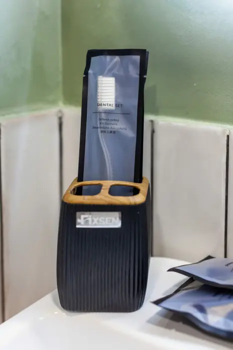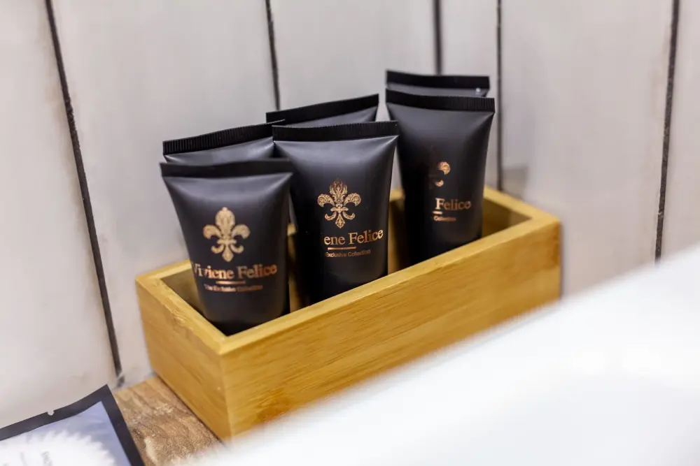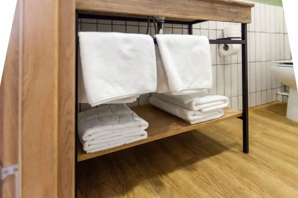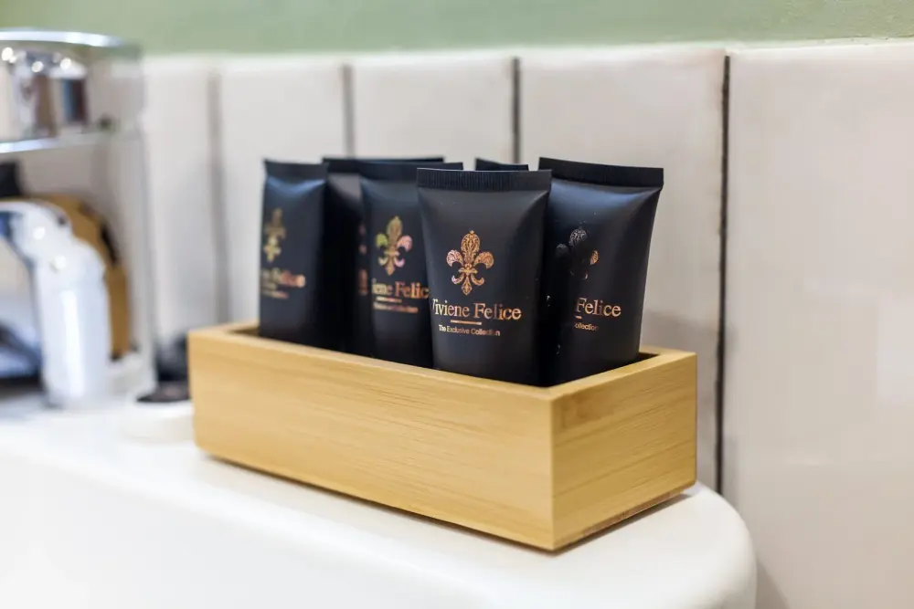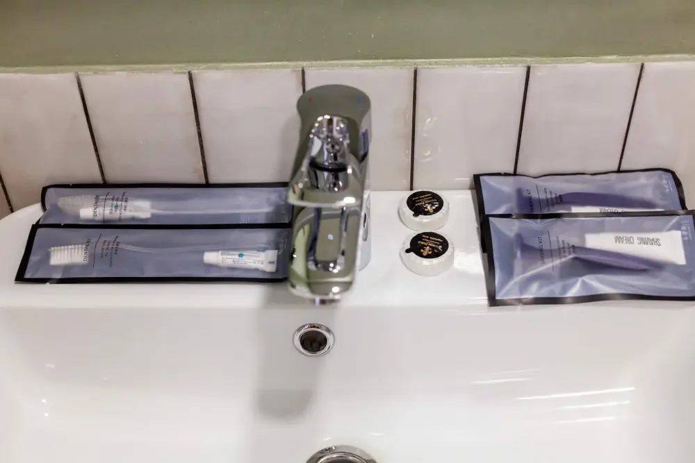В номере 2 ванные комнаты - на нижнем уровне санузел, на верхнем уровне санузел + ванна. Бутылка воды в качестве комплимента.