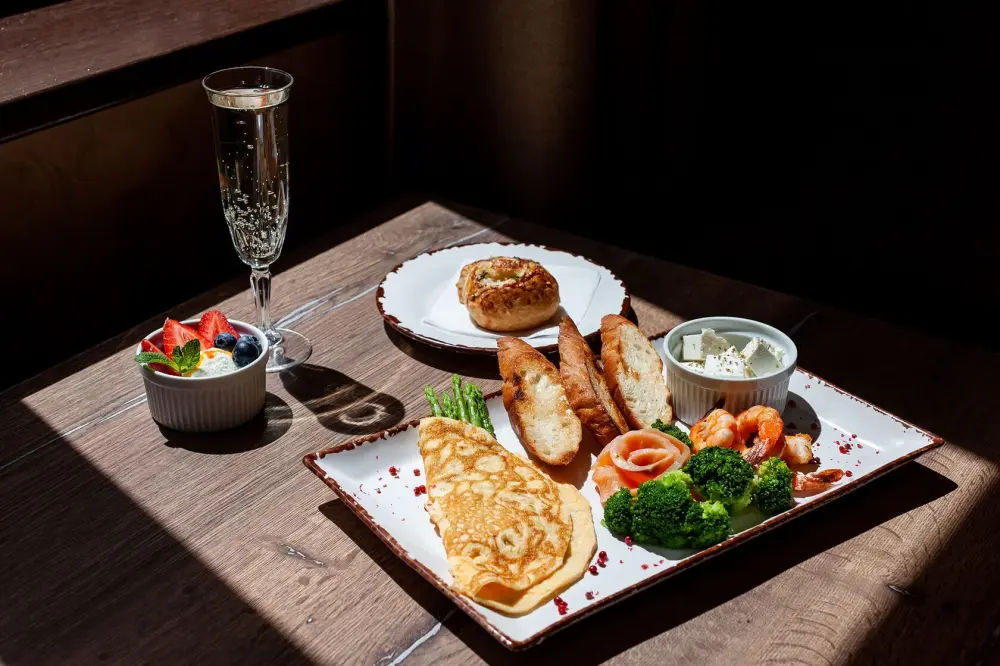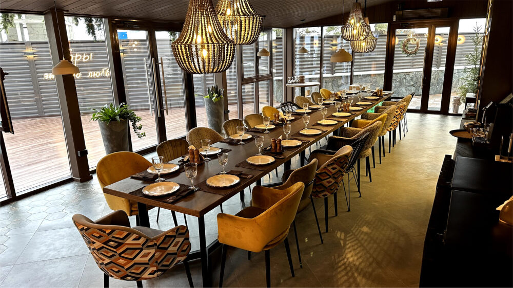 Мы организуем для Вас атмосферный гастроужин или винное казино в ресторане «Винил» с камином, террасой с видом на горы или лаунже на 4 этаже. Сопровождение: по запросу ведущий-сомелье, безупречная сервировка, тайминг 2-3 часа. Гости: от 5 до 30 человек. Услуга доступна по предварительному бронированию (желательно за 48 часов), меню и стоимость - по запросу.