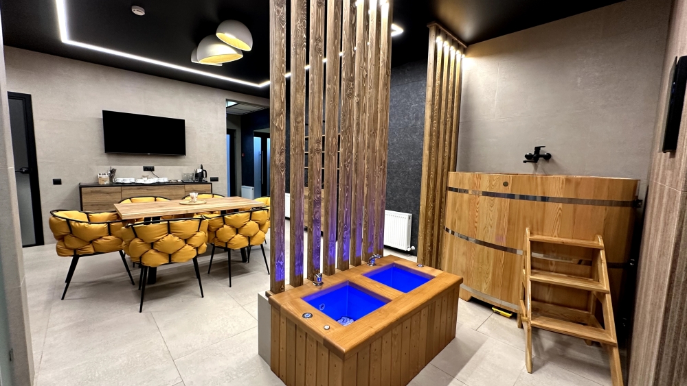 Уникальная спа-зона с травяной купелью, сауной со звуками вьюги, ваннами кнейпа и комфортной зоной для отдыха. Минимальное время брони - от 2 часов, спа-комплексом может воспользоваться группа - до 6 человек. Часы работы с 10:00 до 00:00 часов.