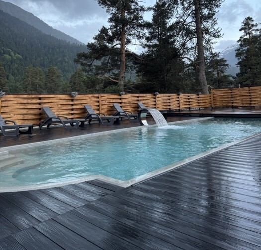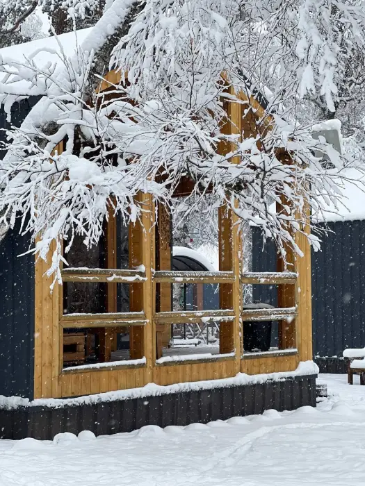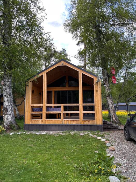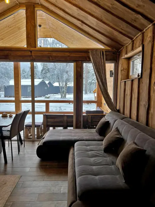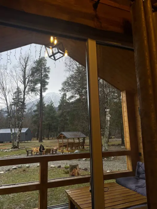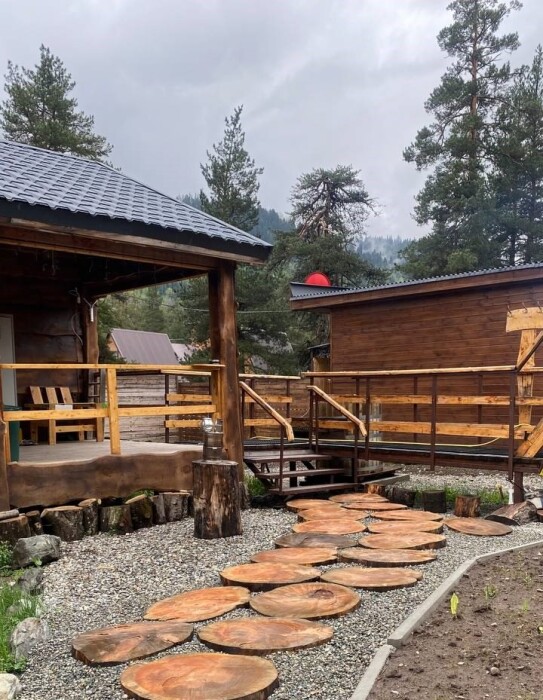 - Кристально чистый горный воздух, тишина, шелест сосен и журчание ручья прямо на нашей территории 5 га. Наслаждаться красотой природы, сидя на уютных верандах с мягкими диванами.