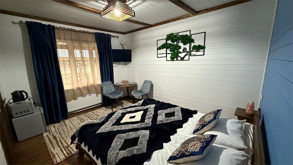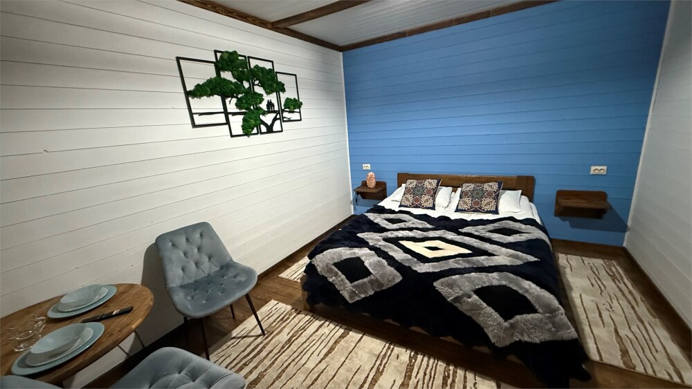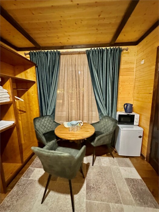 Домики рассчитаны на 2, 3, 4 и 5 человек. Также есть возможность предоставить дополнительное место в каждом домике. Вся территория уложена брусчаткой - наиболее экологичное покрытие, не нагревающееся в жару и не дающее вредных испарений, позволяющее сохранять зеленые насаждения, а также Вашу обувь и машины в сохранности.