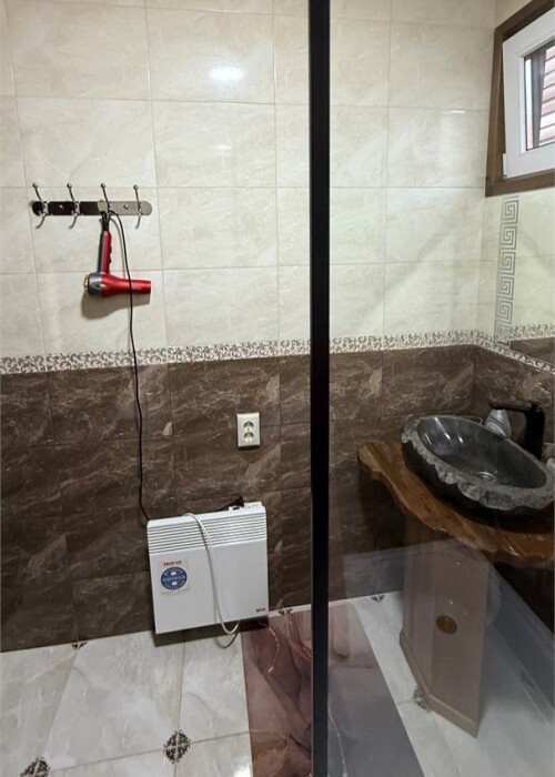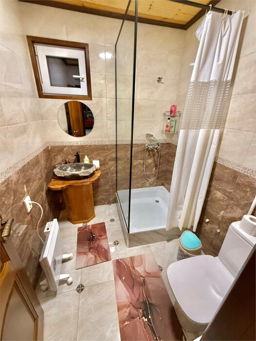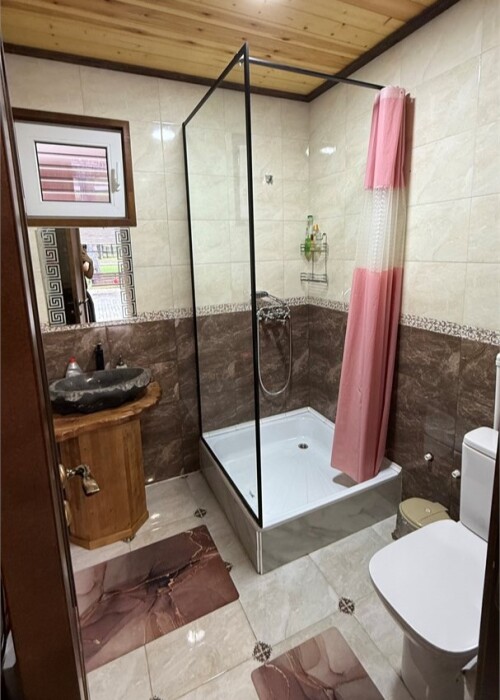 Индивидуальная ванная комната: душ, раковина, туалет.