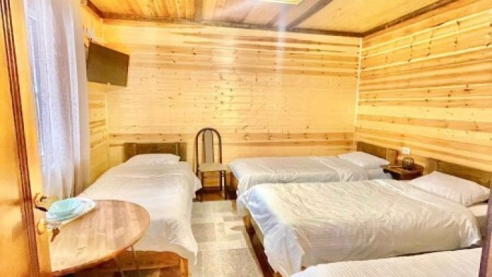 В номере: 1 двуспальная кровать, 3 односпальных кровати.