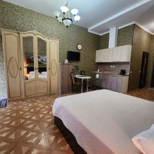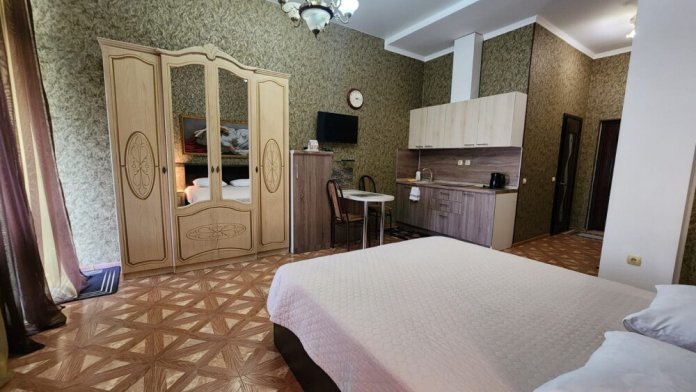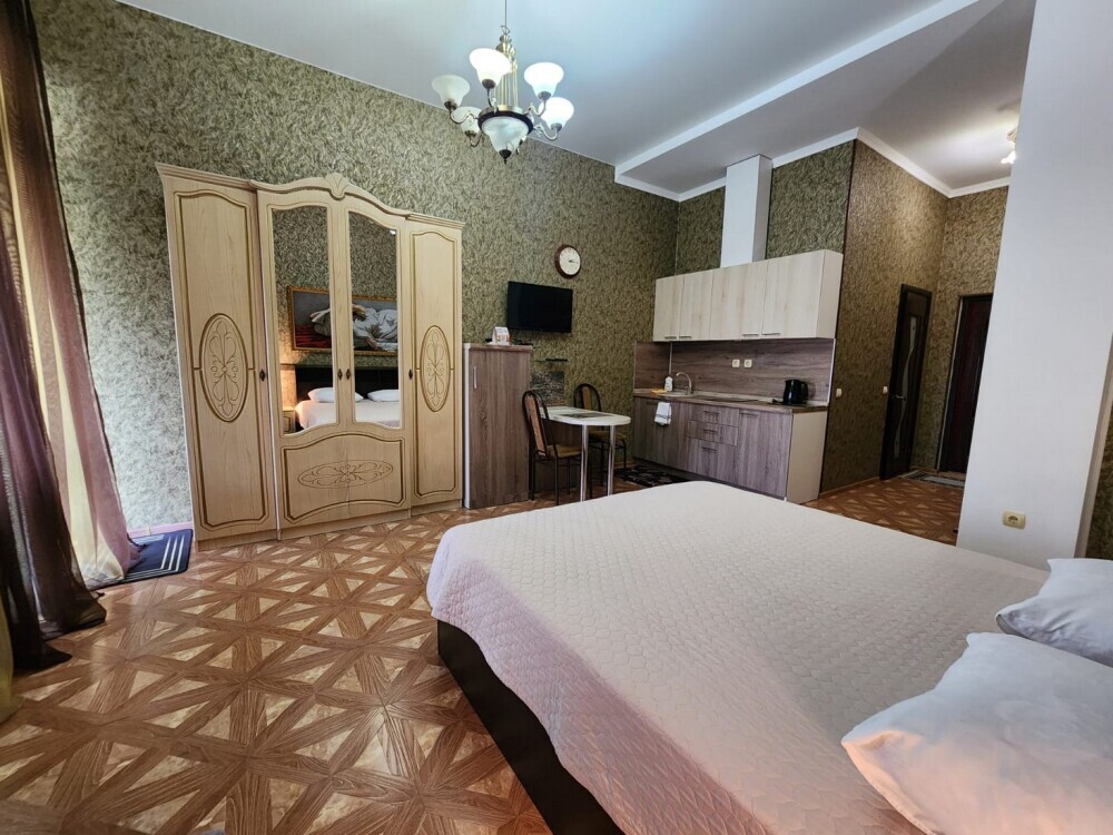 Все номера гостевого дома относятся к категории Люкс оснащены кондиционером, телевизором с плоским экраном и кабельными каналами, укомплектованы чистым постельным бельем и качественной мебелью. Гости пользуются собственными ванными комнатами. Некоторые из номеров имеют собственную кухонную зону (апартаменты). К Вашим услугам на территории имеются индивидуальные жилые домики на 4 персоны, построенные из экологически чистых материалов, в которых есть своя мини-терраса и всё необходимое для проживания.