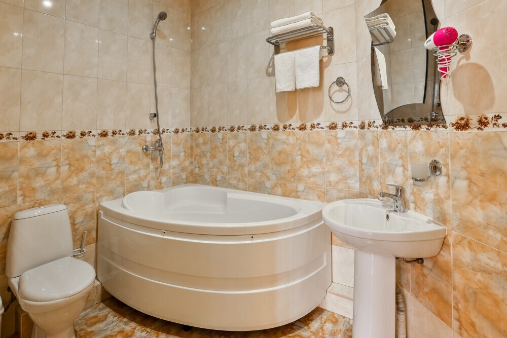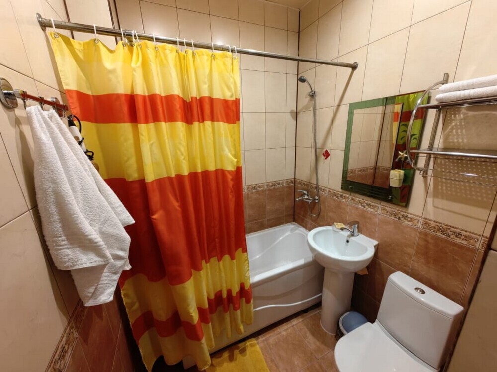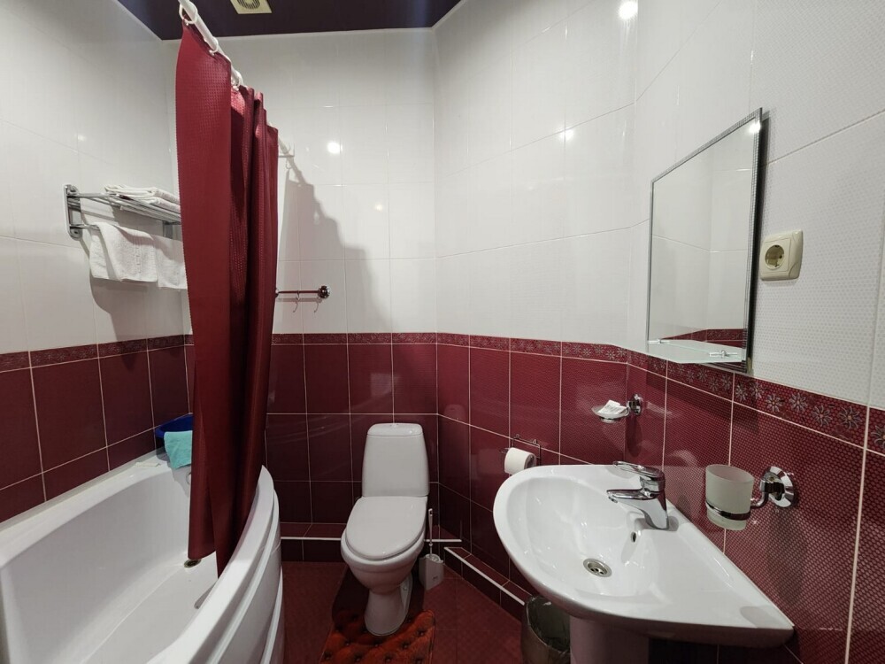 Индивидуальная ванная комната: ванна, раковина, туалет.