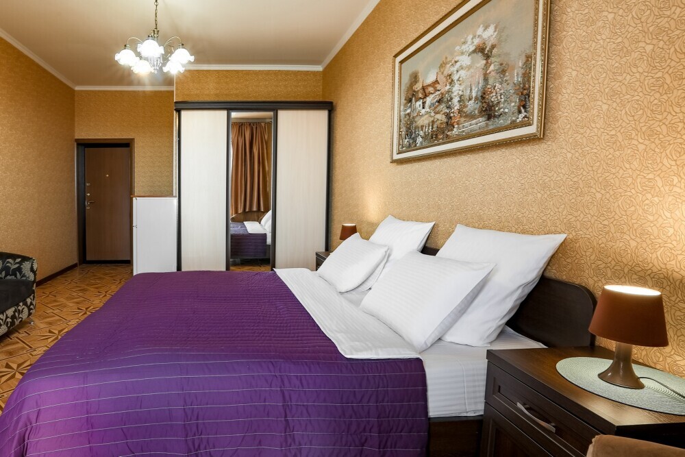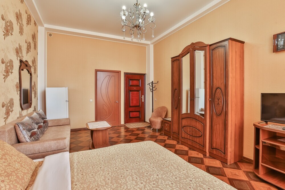 В номере: 1 двуспальная кровать, 1 двуспальный диван.