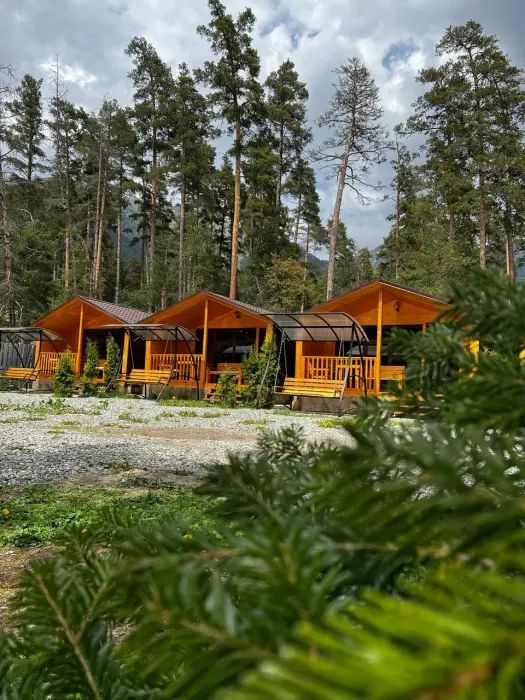 Для размещения гостям предлагают просторные 2-комнатные домики, рассчитаны на 4-5 человек.