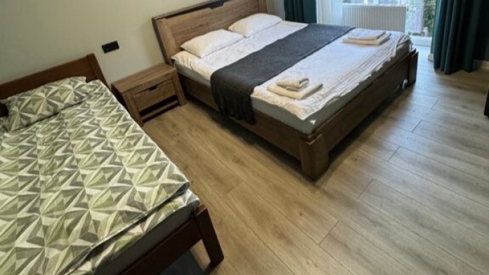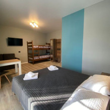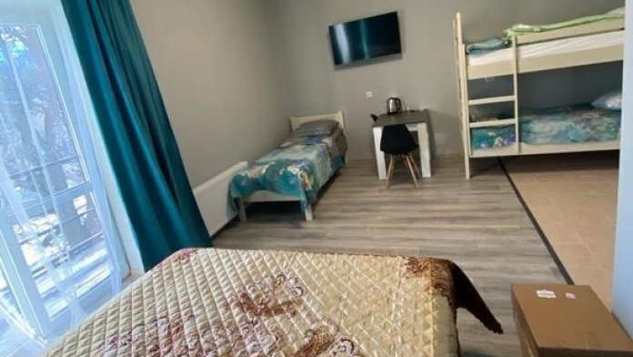 В номере двухместная, двухъярусная кровати и односпальная кровать, есть все необходимое для комфортного проживания.