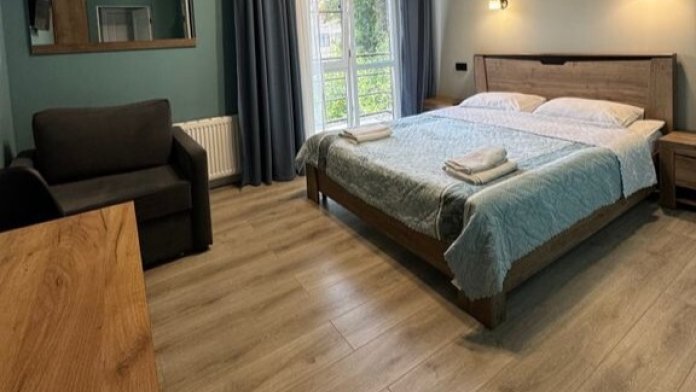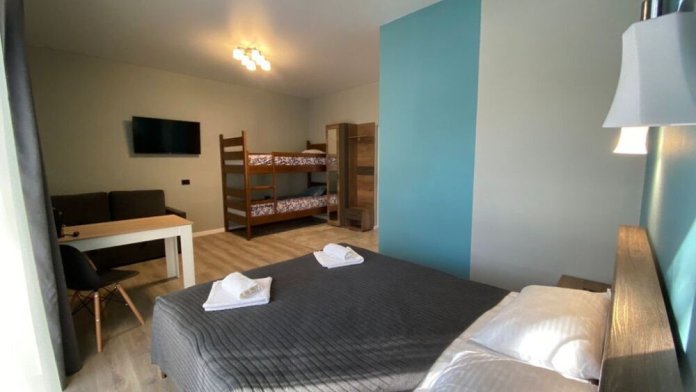 В номере двухместная, двухъярусная и диван, есть все необходимое для комфортного проживания.