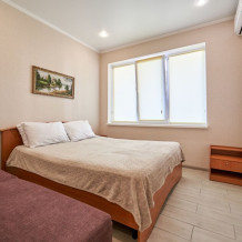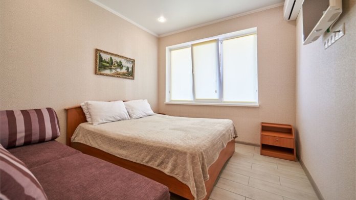 В квартире спальня, проходная комната и кухня. Удобно разместятся до 6 человек. Есть все необходимое для комфортного проживания: кондиционирование и обогрев всех помещений, всегда чистые постельное бельё, полотенца, посуда, на кухне плита, микроволновая печь, чайник, исправно работают tv, Wi-Fi, стиральная машина.