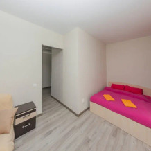 Для гостей с личным автомобилем имеется придомовая парковка. У нас Вы найдете все необходимое для комфортного проживания. В Вашем распоряжении - просторная двуспальная кровать с ортопедическим матрасом, гарантирующим Вам отличный сон. Также, у нас есть раскладной диван для дополнительного размещения гостей. Мы бережем нежные детские сны, поэтому предоставляем кроватку бесплатно. Мы заботимся о Вашем здоровье, поэтому используем гипоаллергенное постельное белье, выполненное из 100% хлопка. В полностью оборудованной кухне Вы с легкостью сможете приготовить завтрак, обед, ужин. Вам не придется задумываться о наличии необходимой утвари, все уже продумано за Вас. На кухне есть стиральная машина, микроволновка, чайник. Не забудьте заглянуть на лоджию, где Вы сможете насладиться свежим воздухом и красивым закатом.