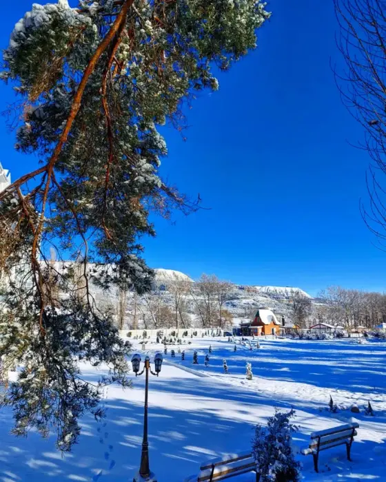 Это новый гостиничный комплекс на 60 номеров и апартаментов. На благоустроенной территории отеля имеется автостоянка. К услугам гостей уютные номера разных категорий и вместимости, а также кафе в котором можно попробовать блюда из жареной, вареной и соленой форели.