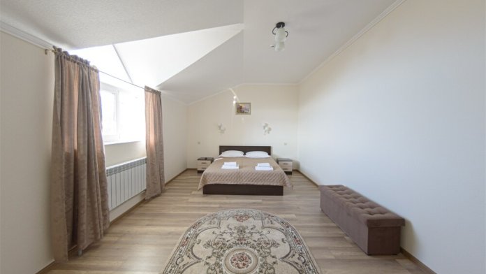 Стандартный двухместный номер оказался очень маленьким. Рекомендую выбрать более комфортный вариант. В номерах есть всё нужное, также имеется комната с утюгами, столовая и приятная территория. Однако, отель расположен далеко от центра города, до которого можно доехать только на такси. Кроме того, форель в ресторане при отеле стоит дороже, чем в городских ресторанах и столовых.