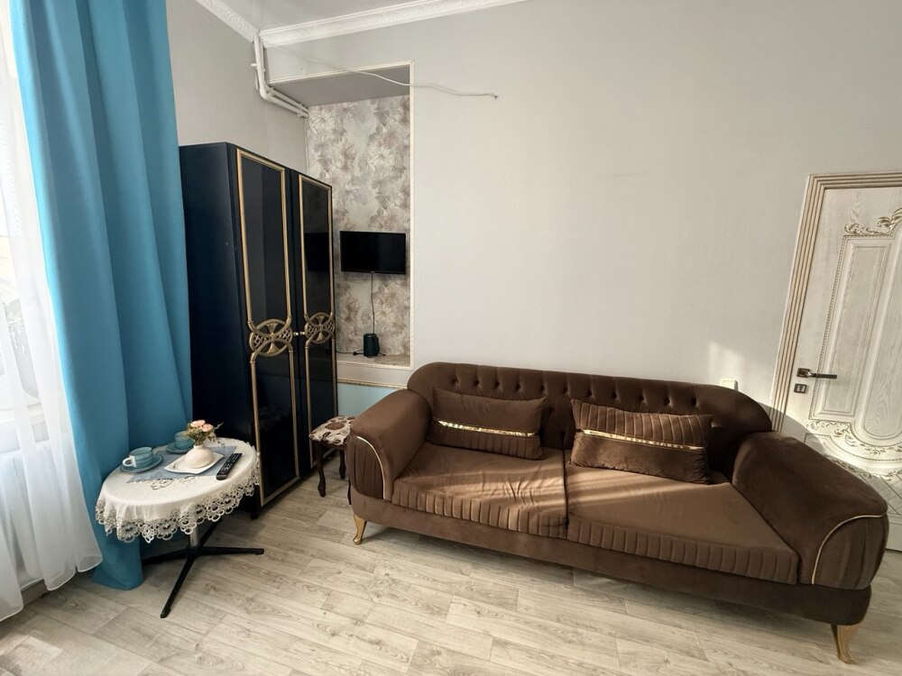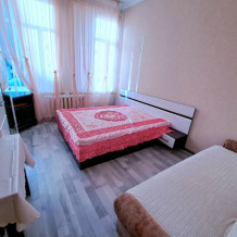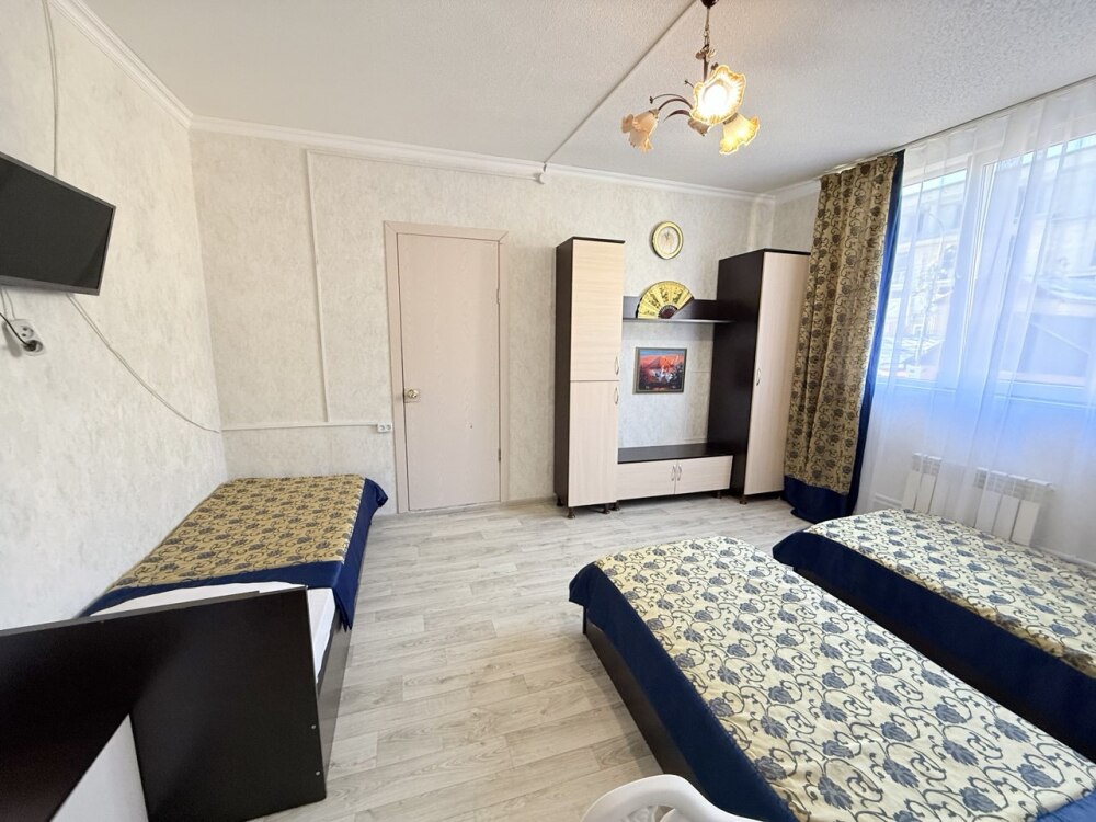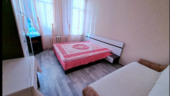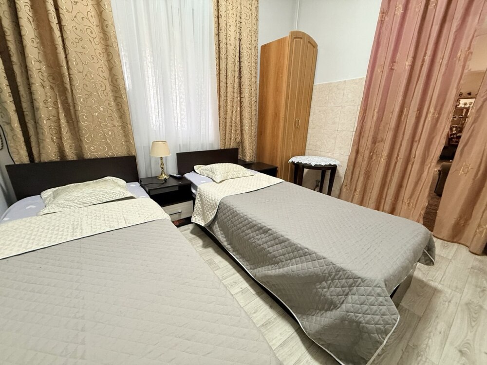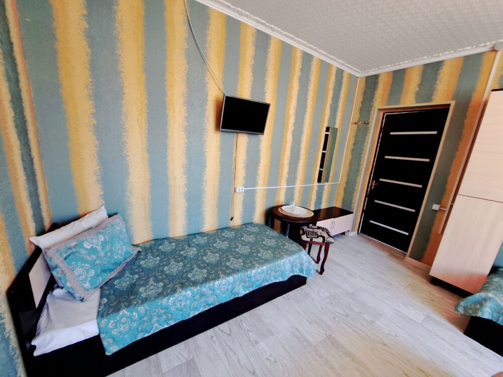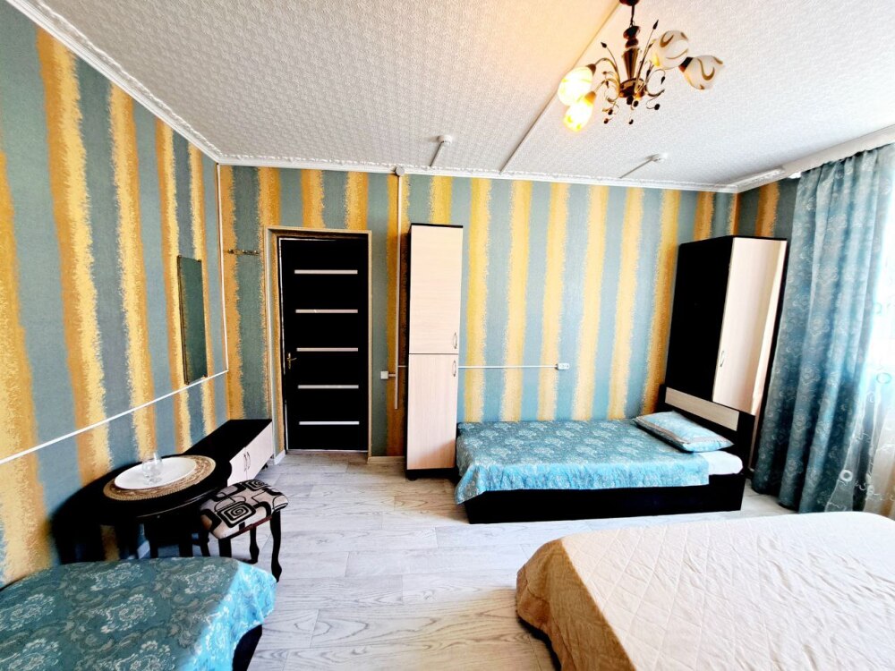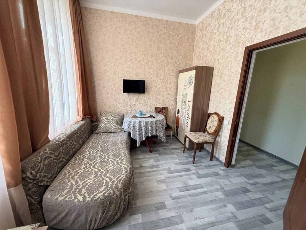 Комфортный номер с двуспальной кроватью и диваном. Удобен для семьи с ребенком.