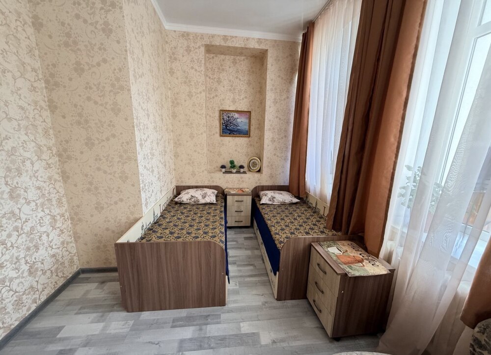На втором этаже есть два 3х местных номера №6 и №7 с двуспальной и односпальной кроватью. В номере 7 есть раскладывающийся диван.
