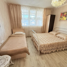 В первой спальне - двуспальная кровать и раскладывающийся диван.