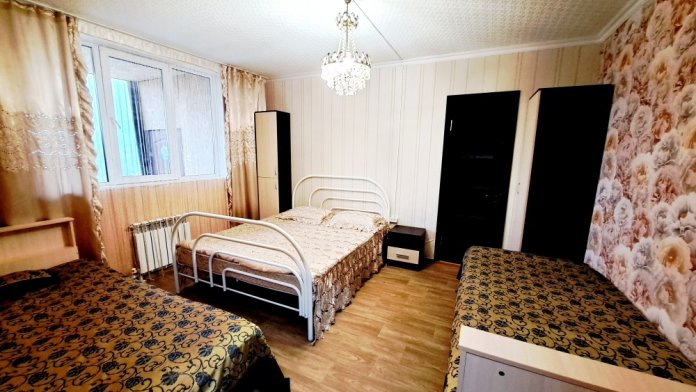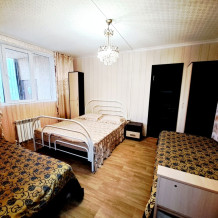 Во второй спальне - две односпальные кровати кровати, раскладной диван и детская кроватка. В ванной комнате - ванна и душ.