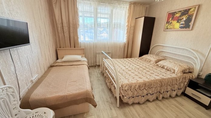 Во второй спальне - две односпальные кровати кровати, раскладывающийся диван. В ванной комнате - ванна и душ.