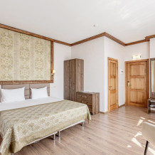 Прекрасный номер, архитектурное решение которого создает ощущение пространства и наполненности светом и воздухом. Просторный однокомнатный номер с двуспальной кроватью и ванной комнатой.