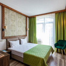 Номера отличает теплая и уютная атмосфера. Однокомнатный номер с удобной односпальной кроватью, ванной комнатой с душем и прихожей.