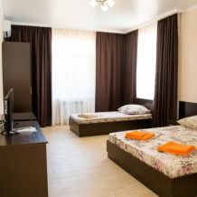 Для Вашего отдыха мы предлагаем однокомнатные комфортабельные 2 и 3-местные номера. Расположены комнаты в трехэтажном уютном корпусе. На первом этаже площадь номера составляет 20 кв м, а каждый номер второго и третьего этажа 22 кв м. В помещениях есть вся необходимая техника и мебель, а так же просторная ванная комната (душ, туалет). Во дворе дополнительно также находится отдельный блок с душевыми кабинками и с/у.