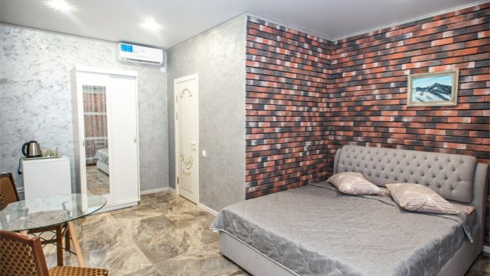 Полулюкс с дизайнерским интерьером, оснащен всем необходимым для комфортного проживания, предметами гигиены, и быта.