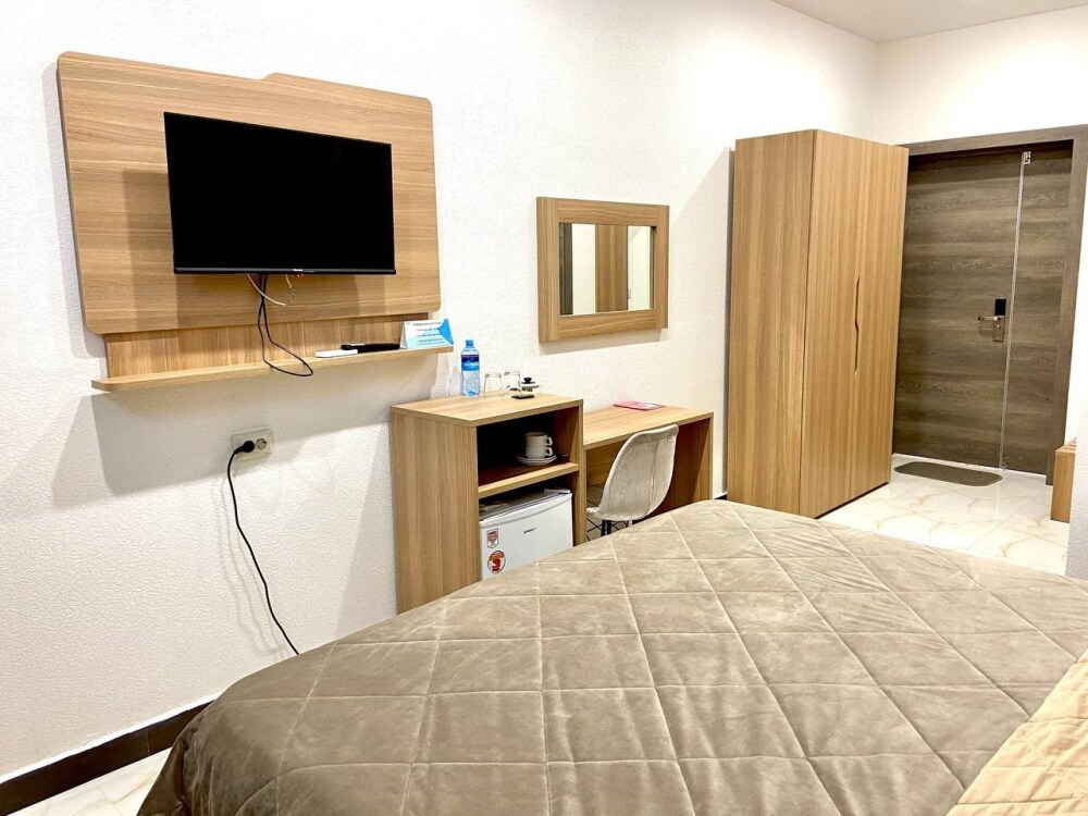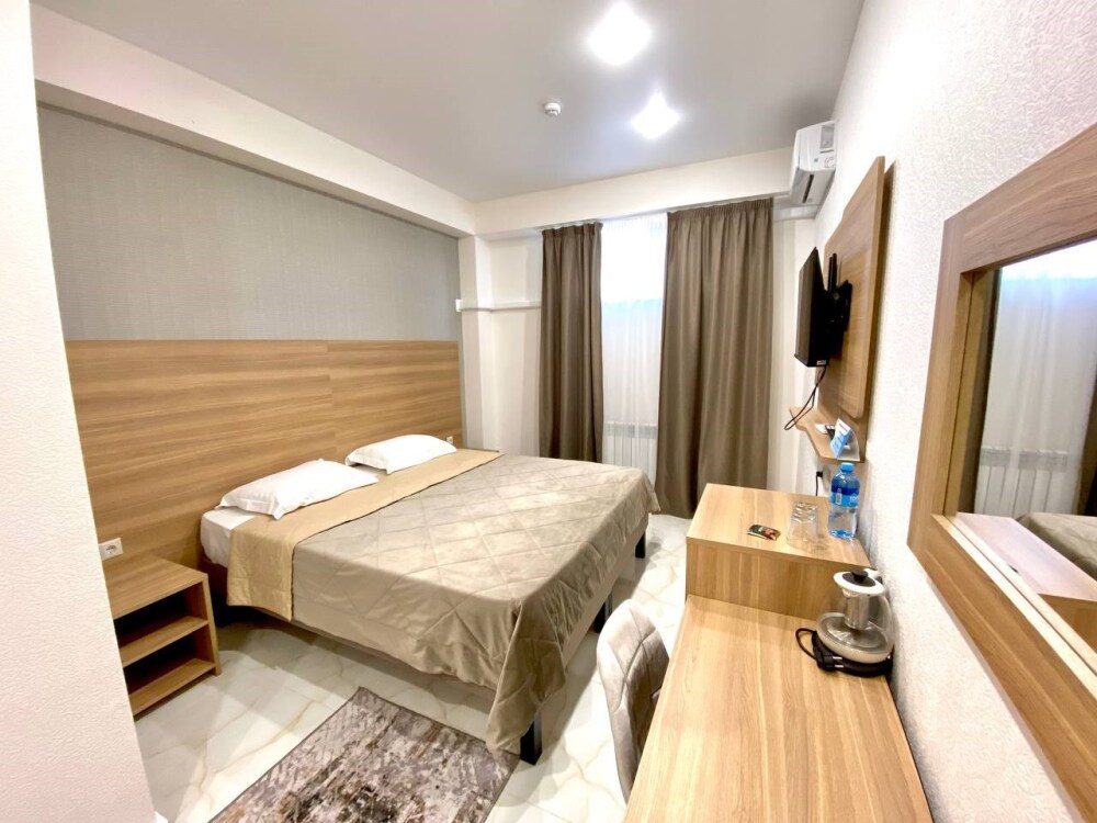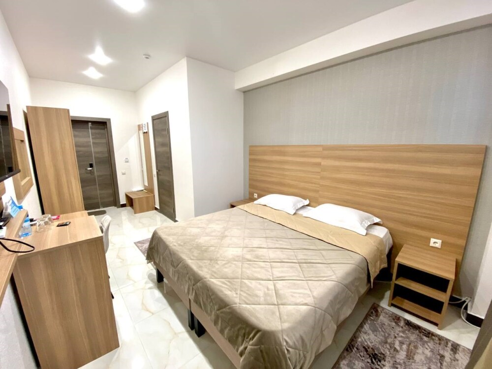 Интерьеры оформлены современным стилем и обставлены стильной мебелью, чтобы гости чувствовали себя как дома. Кровати с мягкими матрасами и свежим постельным бельем обеспечивают спокойный и комфортный сон.