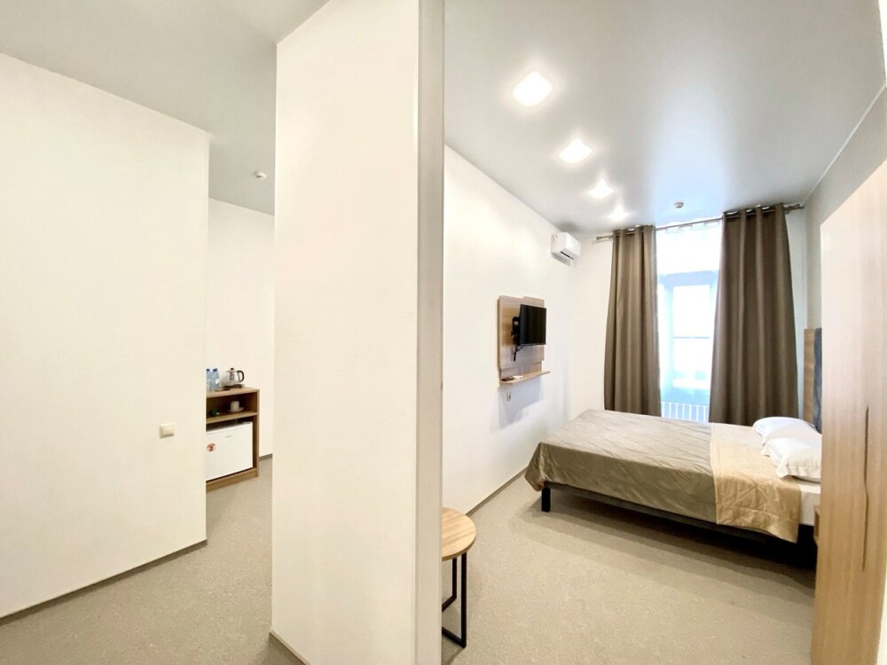 Привлекательный и бюджетный вариант проживания с новой и комфортной мебелью. В номере имеется маленькое окно, а индивидуальная ванная комната со всеми удобствами находится на этаже, вне номера. Идеально для тех, кто ищет доступное проживание без ущерба для уютной атмосферы. Номер находится на цокольном этаже.