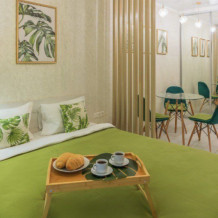 - из мебели: кухня с необходимой для приготовления пищи посудой, всегда в наличии кофе, чай, сахар, снеки;